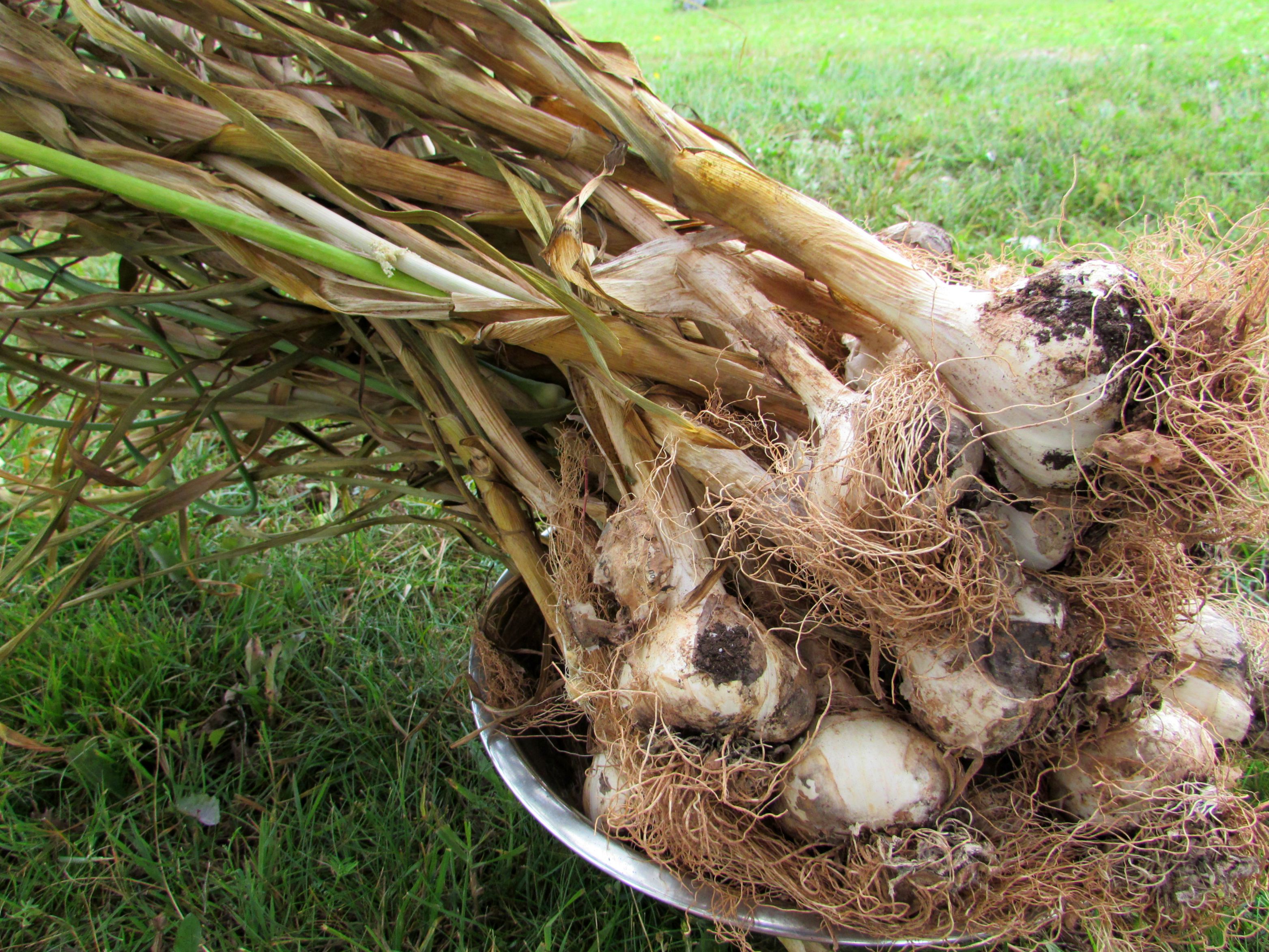 We let them cure for a couple of weeks in the warm, unfinished second floor bathroom of our home. Once sufficiently dry, we clipped the leaves and roots and have them ready to use for the next few months.