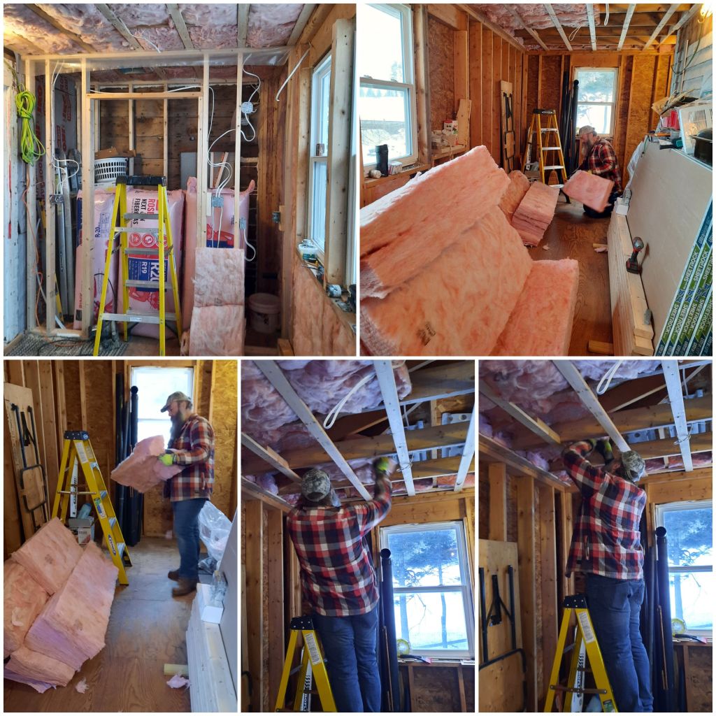 The insulation master at his best. Even on the very cold but warmer day in January he works hard to get her done. It’s -12 as I type… was -24 this morning….. brrrr those are the temps without the windchill factored in.