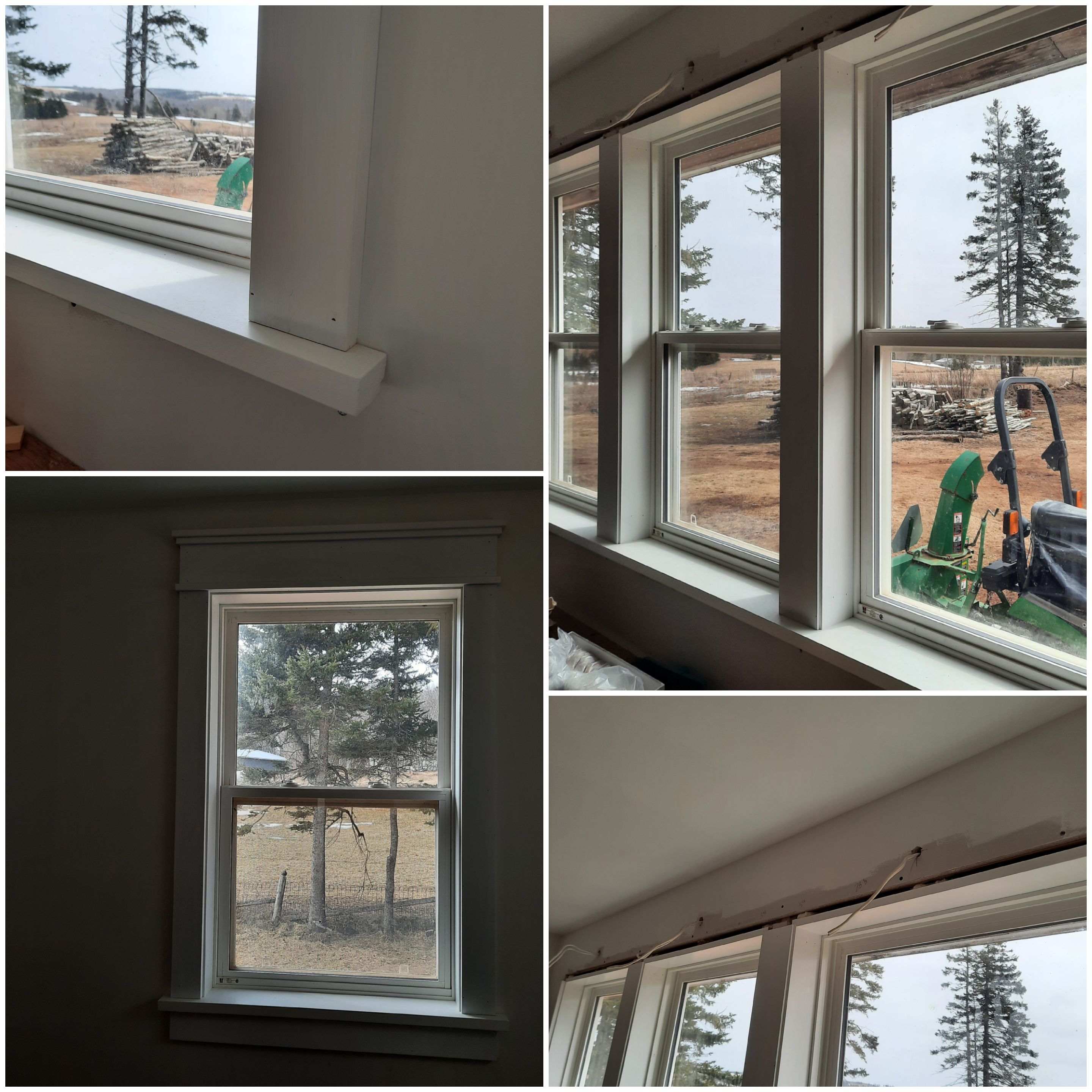 So progress is a little slower this week but we do have some progress. We worked on the window trim in the addition. The west window is complete but the set of 3 windows facing south are partially complete.