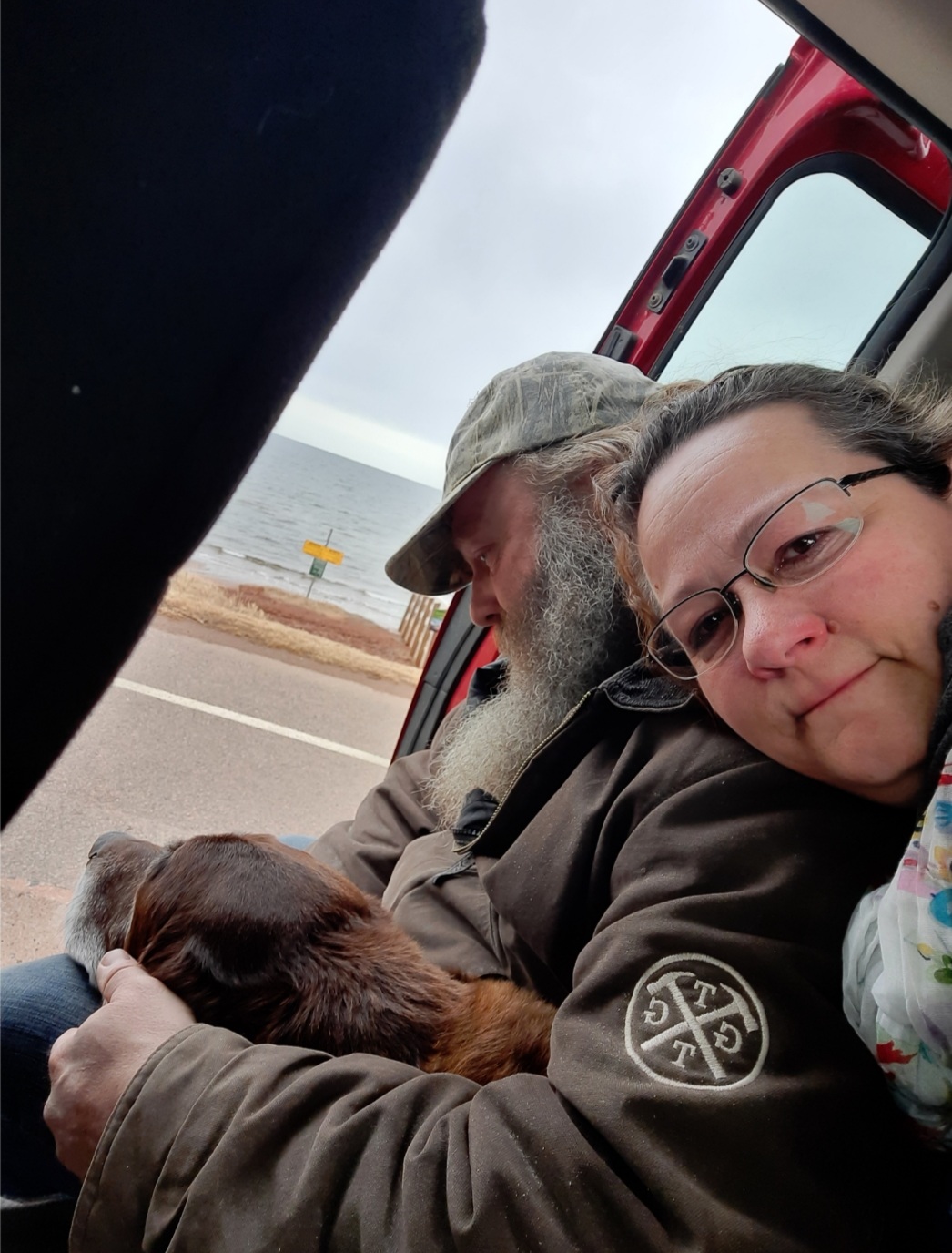 I couldn’t even stand this morning. I was so tired and weak feeling. Mom brought me my water bowl and I had a good drink. They got me ready and said we’re going for a ride in the car. Honestly, I just wanted to lie on my bed, but if that’s what they wanted, I would. I just want them to be happy. They carried me out to the van and laid me on a blanket and off we went.